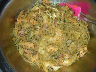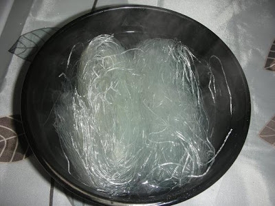 نضع الشعرية الصينية في الماء الساخن و نتركها على جنب