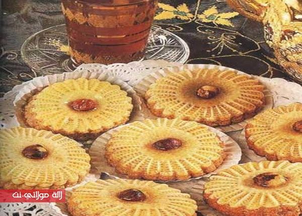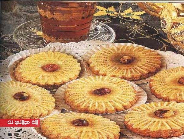 و بعدها ناخذ العجينة و نفردها فوق لوحة العمل مرشوشة بالطحين حوالي 2 مم ثم نقطع العجين المفرودة الي مربعين و ناخد الحشو و نضعه فوق واحد منهم و نغطيه بالمربع الثاني ثم نحاول تسوية الحشو جيدا داخل العجين باليد ثم نشكل الاشكال التي نريد و نزينها بالقبضة الخاصة بالحلوى مثل شكل الصورة و نضع فوقها حبة جوز او بندق و نضعها في الفرن 180 درجة و مدة 20 دقيقة و بعد اخراجها نضعها في القطر البارد .