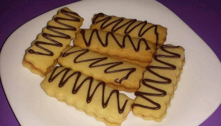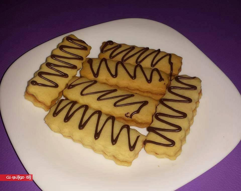 250 غ زبدة طرية نضيفلها كاس سكر ناعم نخفقهم مليييح حتى يصيرو كريمة و نضيف كاس زيت و 2 ملعقة نشاء و كيس خميرة و علبة ياغورت بنكهة الفراولة و 2جبن مثلثات نخلط كل المكونات و نلم بالفرينة نتحصل على عجينة طرية شوي ما نيبسهاش بزاف نغطي العجينة بكيس و ندخلها للثلاجة ترتاح نصف ساعة و نخرجها نحلها فوق بلاستيك و نطبع باي طابع انا درت طابع الاصابع و طيبتهم على 180درجة و لما بردو لصقت كل زوج بسوبار كرام ذوق فراولة و كتزيين من فوق عملت خطوط بالشوكولا.