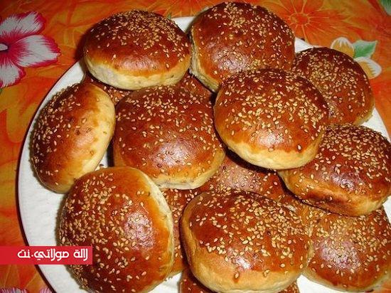 بعد ذلك نقوم بتقطيع العجين إلى كرات صغيرة، وذلك فى صينية مدهونة بالزبدة ومغطاة بالدقيق .. بعد أن نقوم بدهن أيدينا بالزيت، ونترك هذه الكرات لتختمر لمدة نصف ساعة، ثم ندهنها بالسمسم، وصفار البيض، وأخيراً ندخلها الفرن.