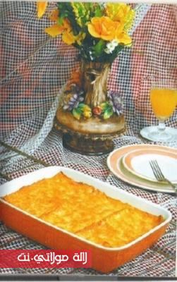 يفرش نصف الخليط المحضر فوق السباكتي ويسقا بنصف مقدار الصلصة