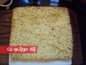 ثم نوضعو القسم الثاني من الكيك و نسقيوه