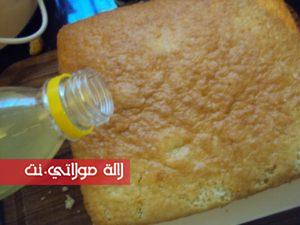 بعدما سقينا نصف الكيك بالسيرو ندهنوه بطبقة من الشانتيي
