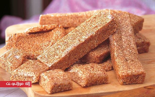 5-تترد السمسمية حتى تبرد وتتماسك ثم تقطع إلى قطع مستطيلة أو حسب الرغبة وتقدم ..