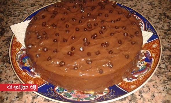 اخر خلطيهم مع بعضهم و اضيفي ابيض البيض في الاخير وتدخل الفرن تزين بكريم باتيسري مع الكاكاو وحبيبات الشكلاط من الفوق.