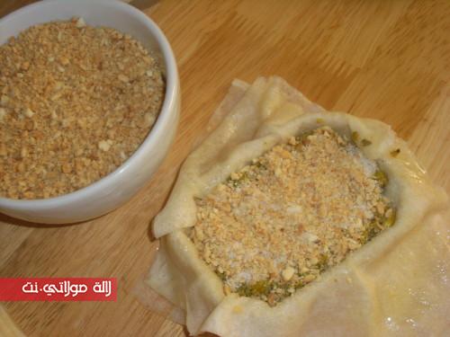 اما طريقة اعداد البسطيلة معروفة نضع تفريشة من الدجاج تم اخرى من البصل والبيض و اخيرا اللوز و نرش شوية سكر سنيدة مع دهن الورقة بالزبدة ندهنوا البسيطلات باصفر البيض ثم الى الفرن حتى تتحمر من الوجهتين