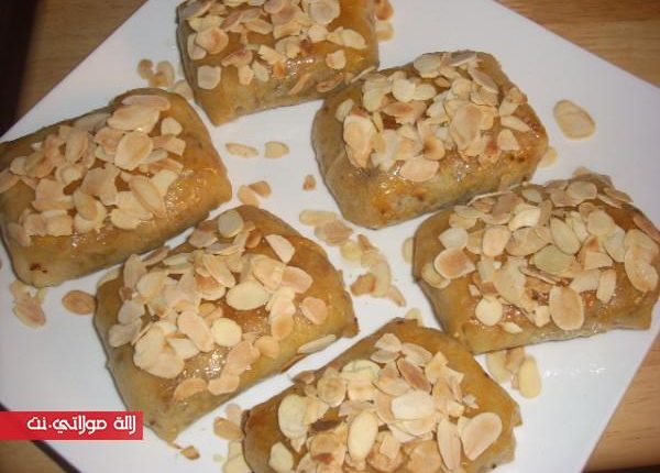 تقدم البسطيلات في صحن مسقيين بالعسل و مزينين باللوز ايفيلي.