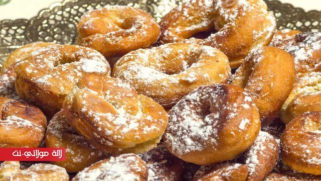 • قسمي العجينة الى قسمين، افردي كل منها على سطح صلب ثم قطعيها الى كرات و اعملي ثقب وسطها.