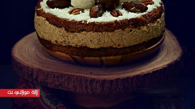 • زيّني الكيك بالتمر وكرات الكوك ثمّ قدّميه.