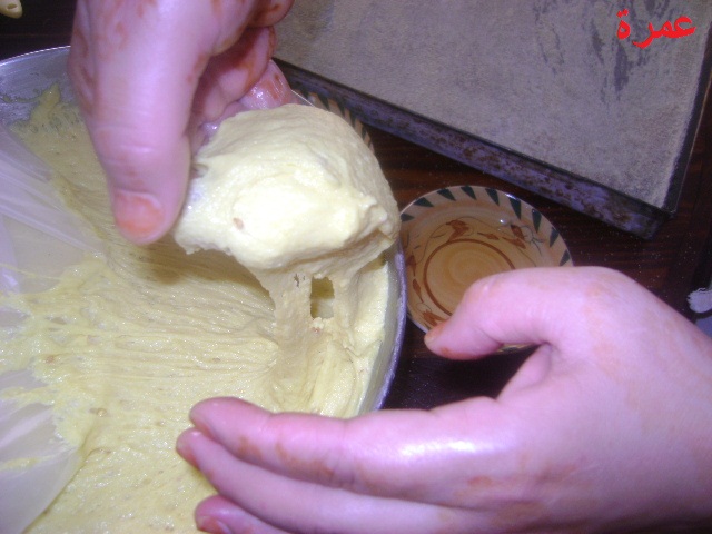 تندهنوا الطاوة بالزيت ودقيق فينوديال القمح وتندهنو اليد بالزيت وتنخدوا كرة
