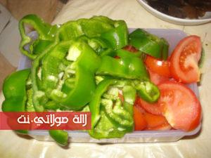 ثم نزينها بالفلفل والطماطم وشرائح الحامض و البطاطس