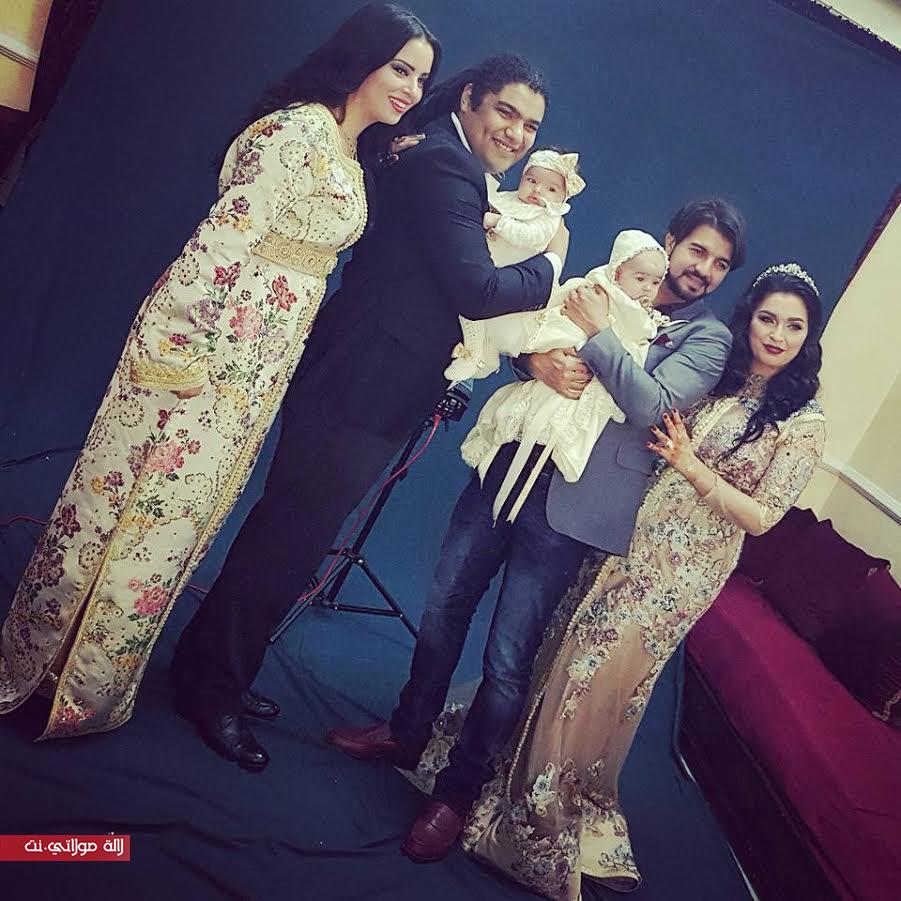 عمر لطفي و زوجته فرح الفاسي يحتفلان بعقيقة مولودتهما برفقة فريد غنام و زوجته