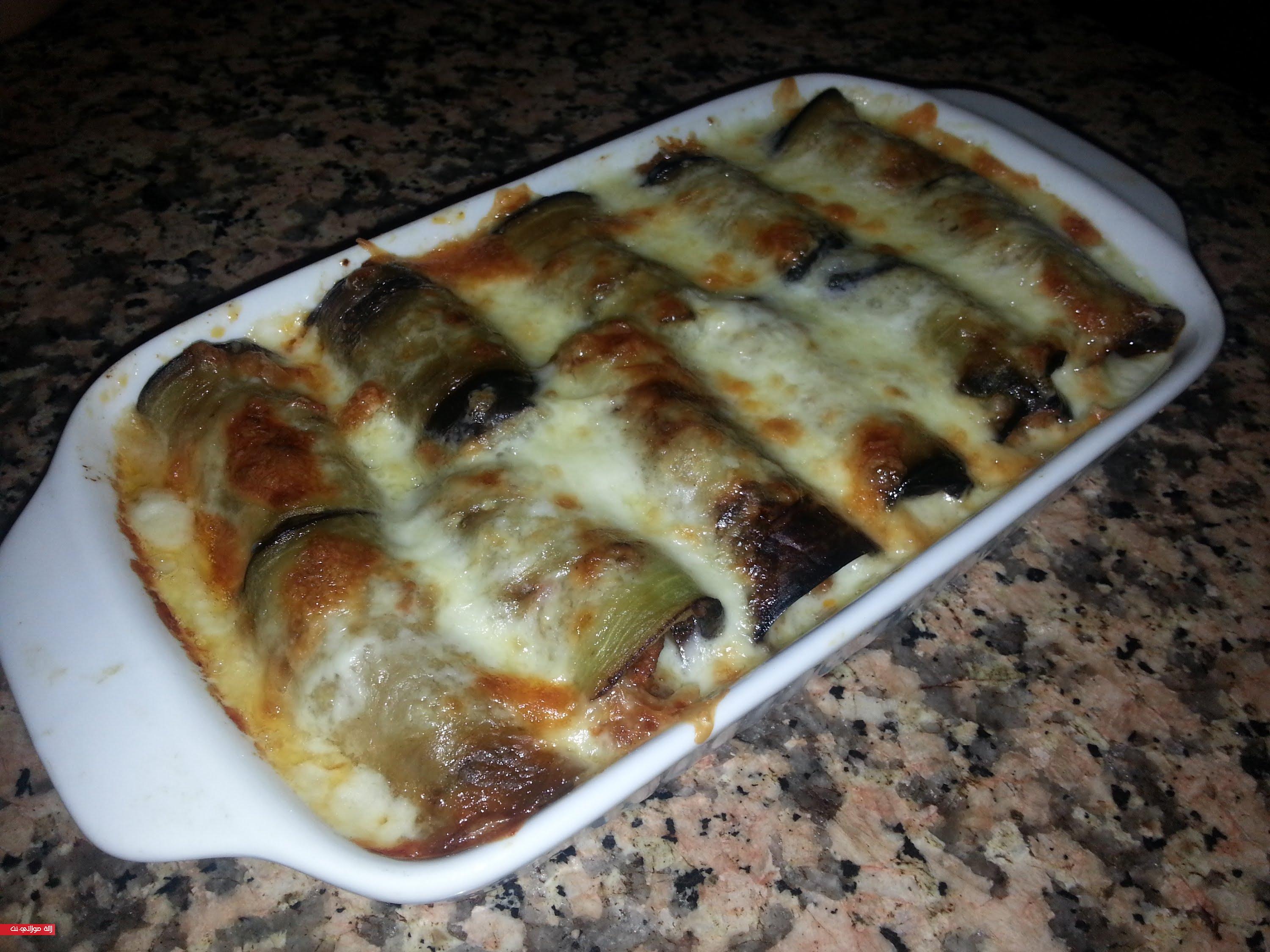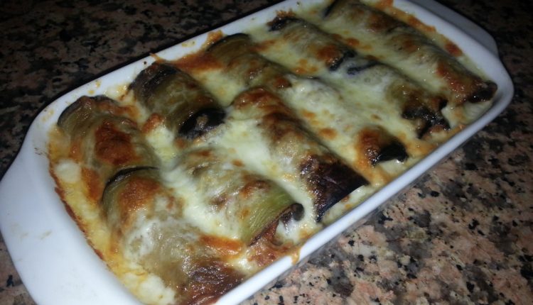 - خذي كل حبة باذنجان مقلية، وضعي في وسطها ملعقة كبيرة من الحشوة، ثم لفيها حول نفسها.