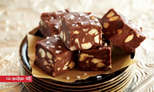 اضيفي الخليط السابق إلى الصينية وضعيه في الثلاجة لمدة ساعتين على الأقل، ثم قطّعيه مربعات صغيرة وقدّميه