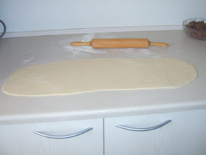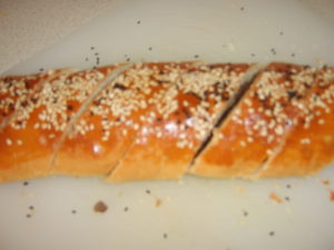 و عندما نخرجها من الفرن..نقطع الرول بشكل مائل (مورب
