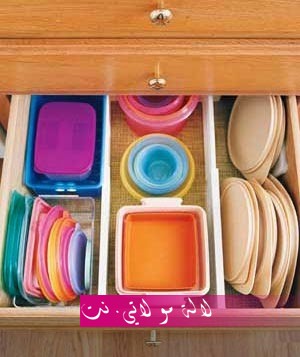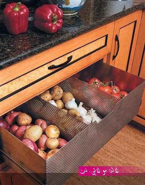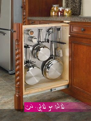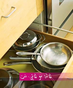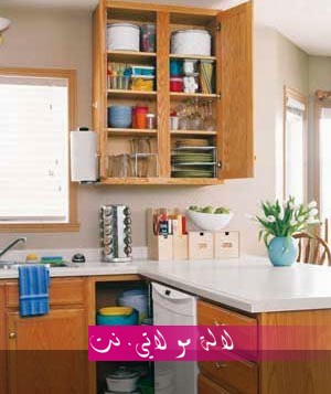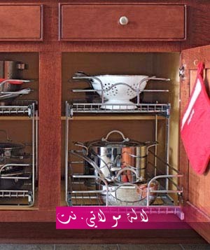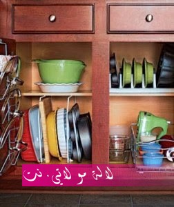 ضعي الادوات الاكثر استخداماً في متناول يدك والاقل استخداماً في وحدة تخزين علوية لتوفير المساحة للعمل بدون ازدحام المطبخ.