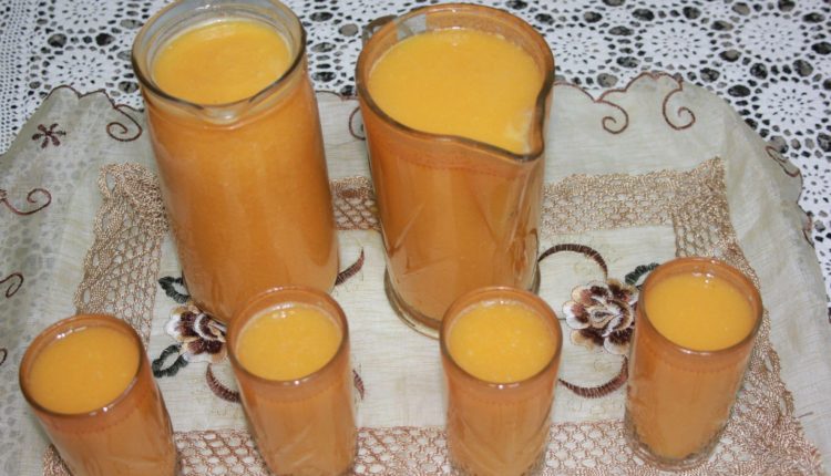 ننقي الجزر والخيار ونصلقه نصف صلقة تم نغسل الفراولة ونعملها في المجمد قليلا حتى تبرد تم ننقي البرتقال كله الا واحدة نتركها بقشرتها نطحن البرتقال المقطع مع الماء ونصفي ونعيد طحن البقايا 2 مرات تم نصفي ونبدا نطحن في الخلاط كل لتر فيه جزر وخيار ونصف حبة كيوي و حبة تفاح وملعقتين دانون وسكر تم حبات الفراولة المجمدة ونخلط الكل ثم نملا القنينات وندخله الثلاجة بالصحة.