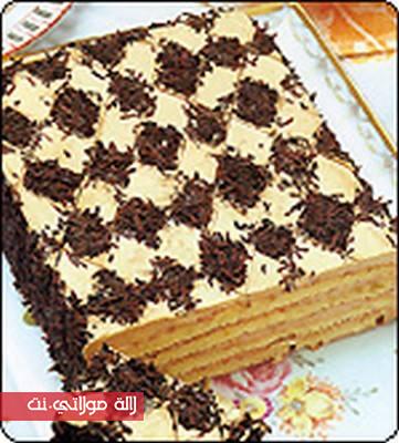 * عندما تضعين القطعة الأخيرة غطي الحلوى كلها بالكريما.