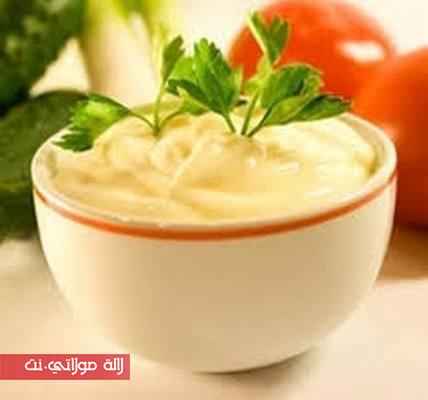 1اصفر بيضة ـ1فرماجة مثلثة كيري ـ 1كاس صغير زيت رومي ديال نوار باش اجيكوم احسن ـ 1ضرس ثوم محكوك ـ 1ملعقة كبيرة قزبور مقطع مزيان ـ ذرة ابزارـ شوية ملح ـ1ملعقة كبيرة الى 2 معالق ديال الخل ـ قطرات شوية حامضة. الكيفية كالتالي :يطرب صفار البيض والخل ثم قطرات شوية دالحامضة ثم يضاف الزيت مع الخلط فالميكسور ثم 1ثويمة محكوكة ثم القزبور وشوية ملح ثم ابزار واخيرا 1فرماجة ويخلط الكل ويقدم بالصحة والهناء