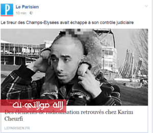 وأضاف  المصدرنفسه، أن الشرطة الفرنسية، قامت بتفتيش شقة كريم شورفي في بلدة شيل بعد حادثة إطلاق النار التي وقع في “الشانزيليزيه” والتي راح ضحيته شرطي وأصيب اثنان بجروح.