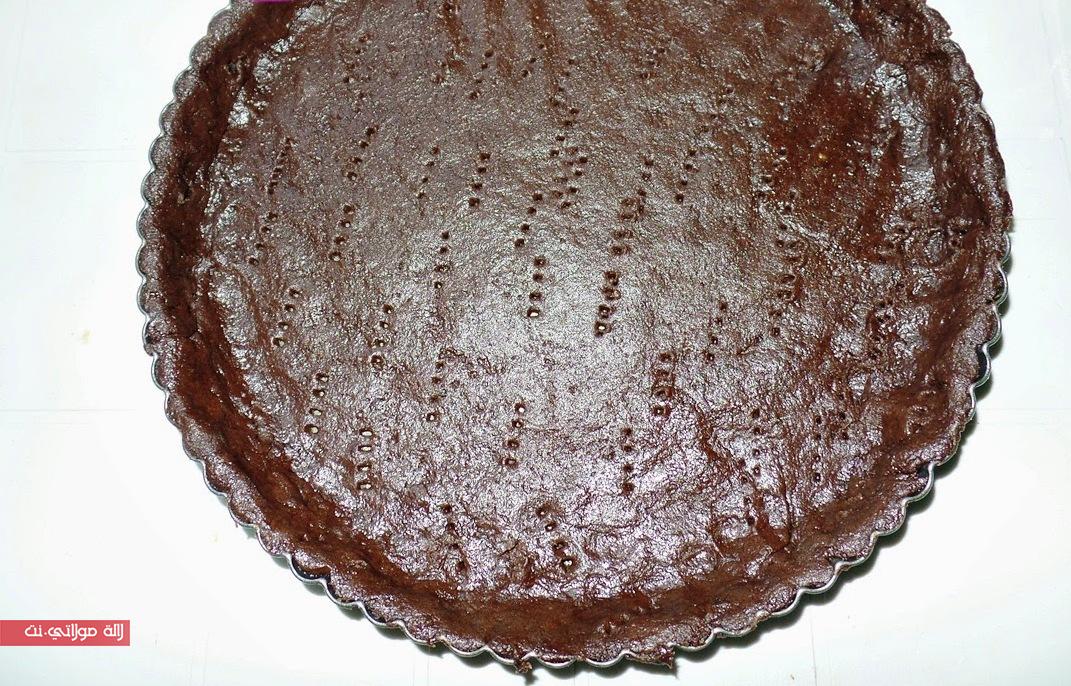 نصب الخليط فوق العجين ندخله الفرن على درجة حرارة 180 مدة ثلث ساعة حتى تستوي الكريمة والعجين ونقدمها مزينة باللوز المقلي والعسل.