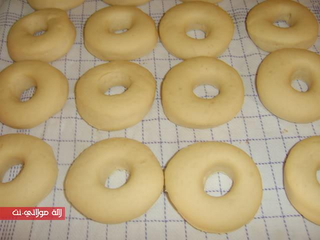 يمدد العجين بعد ذلك على سطح مرشوش بالدقيق، تقطع دوائر متساوية أو حسب رغبتك