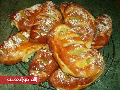 نضع في قصعة الطحين والسكر والفانيلا، تضاف الخميرة والبيض واحدة تلو الأخرى. يعجن المزيج لمدة 5 دقائق تقريبا (أو حتى عدم التصاق العجينة).