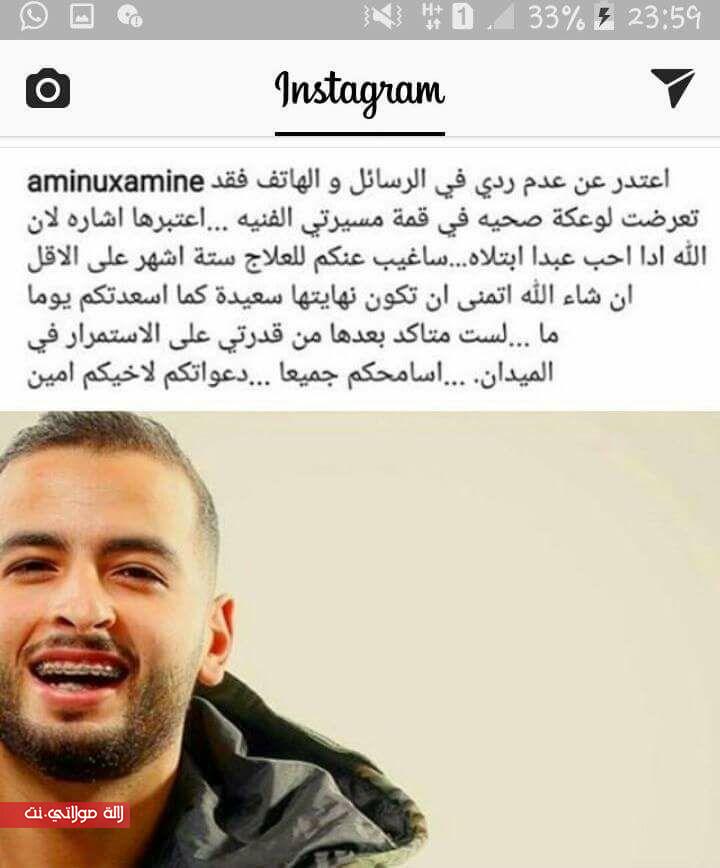مؤسف…الفنان أمينوكس يعلن إصابته بمرض خطير ويكشف عن إمكانية اعتزال الغناء