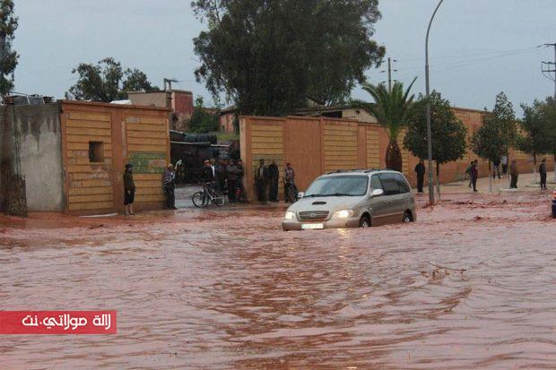 وغمرت سيول الأمطار، التي لم تستمر أكثر من 10 دقائق، السيارات والشاحنات والمحلات التجارية، ويعزى هذا الأمر إلى غياب قنوات الصرف الصحي بالمدينة.