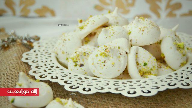 • ضعي خليط السكر فوق أبيض البيض تدريجياً مع الخفق المستمر.