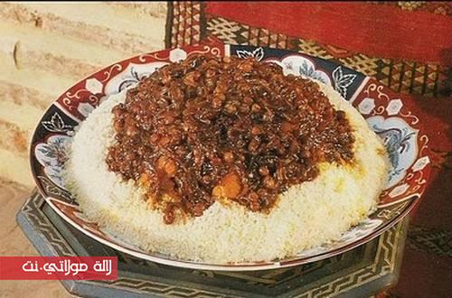 مقادير الكسكس باللحم والبصل والزبيب والحمص