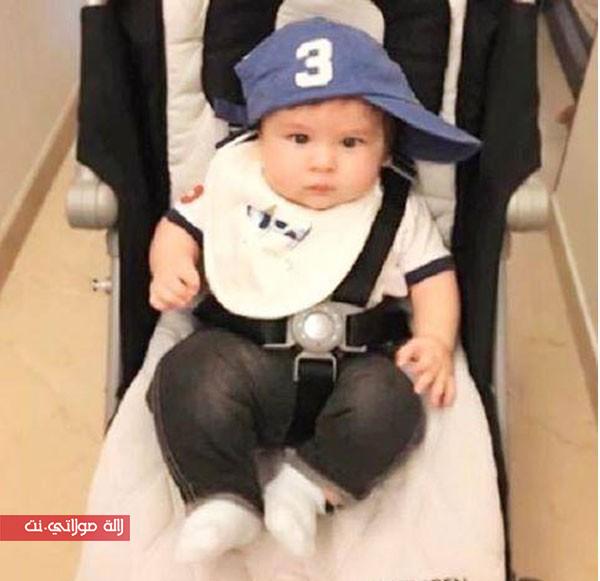 يبدو أن كارينا التقطت الصورة لطفلها في أثناء تواجدها بإحدى الصالات الرياضية،حيث يظهر حفيد عائلة باتودي مبتسما يرتدي تي شيرت أبيض ناعم مع جينز أسود وهو يجلس على احدى الأجهزة الرياضية.