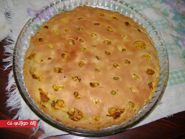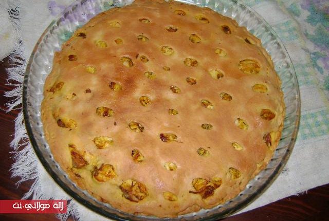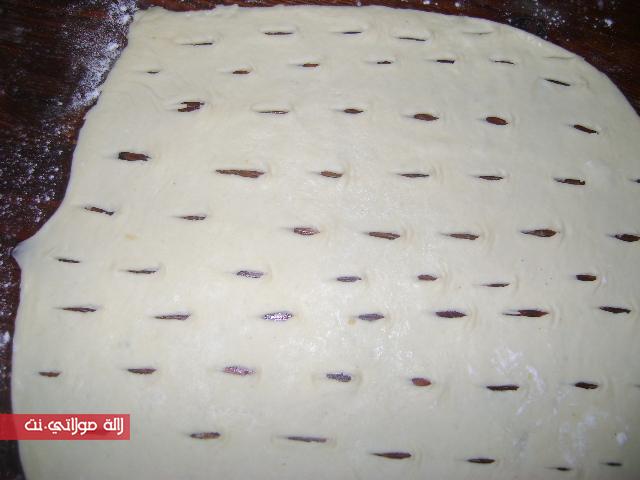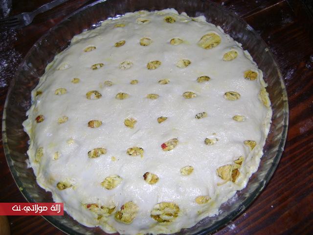 تم نغطي به الحشو ونغلقها جيدا من الجوانب نتركها ترتاح قليلا نهن وجهها بالزبدة تم الى الفرن حتى تطيب من الاسفل عاد نشعلوا الاعلى