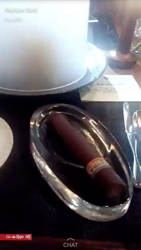 ونشرت مريم سعيد صورا وهي تأكل قطع حلوى، وشكلاطة على شكل “سيكار” كوبي.