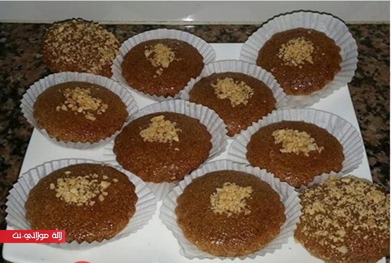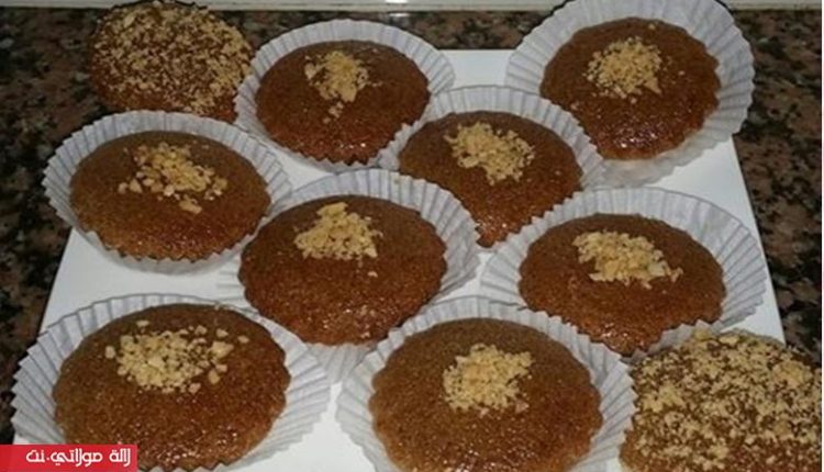 ثم نسكبه في مولات صغيرة مدهونة بالزبدة ومرشوش بالقليل من السميد