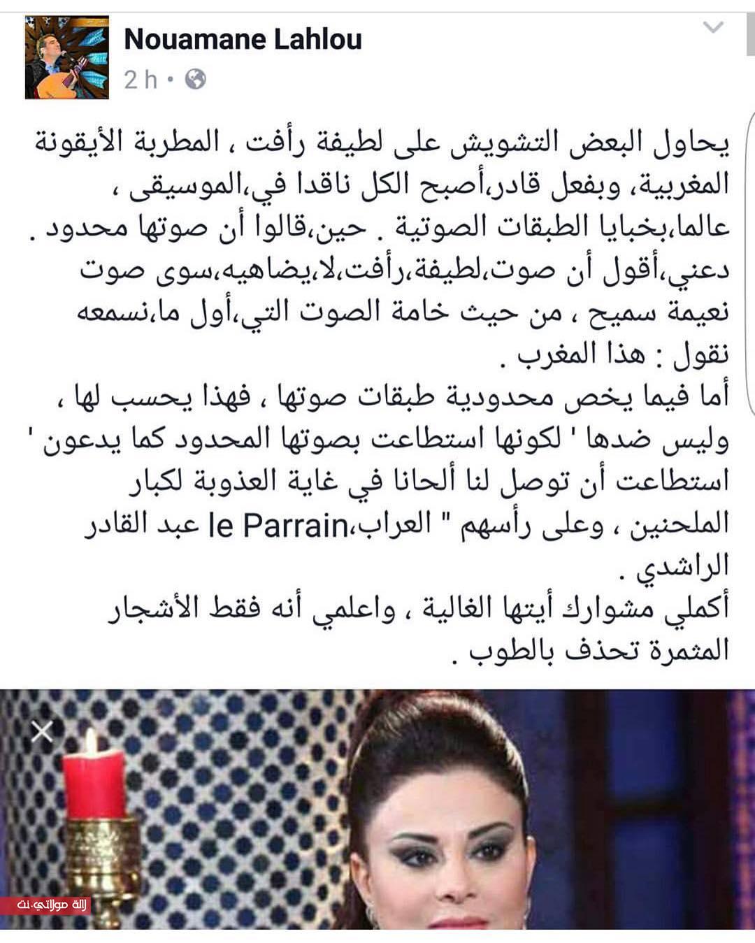 أعربت الفنانة هدى سعد عبر حسابها الخاص بموقع التواصل الاجتماعي “انستغرام”، عن تأييدها لتدوينة الفنان نعمان الحلو على الفيسبوك، والتي عبر فيها عن دعمه للفنانة لطيفة رأفت بعد حملة التشويش التي طالت الفنانة ووصفتها بضعيفة الصوت.
