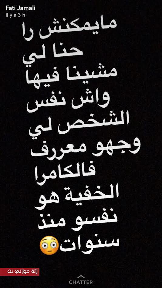 شككت فاتي جمالي مليحة العرب مساء آمس الثلاثاء٬ في مصداقية الكاميرا الخفية التي تبثها القناة الثانية من خلال نشرها لتدوينة عبر حسابها الرسمي على تطبيق السناب شات حيث كتبت فيها « ما يمكنش حنا لي مشينا فيها واش نفس الشخص لي وجهو معروف فالكاميرا الخفية هو نفسو منذ سنوات ».