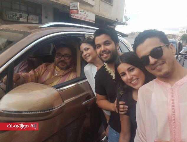 وظهر الملك في الصورة رفقة مواطنين طلبوا الحصول على صور سيلفي مع الملك وهو في سيارته بنية اللون، ويرتدي لباسا تقليديا.