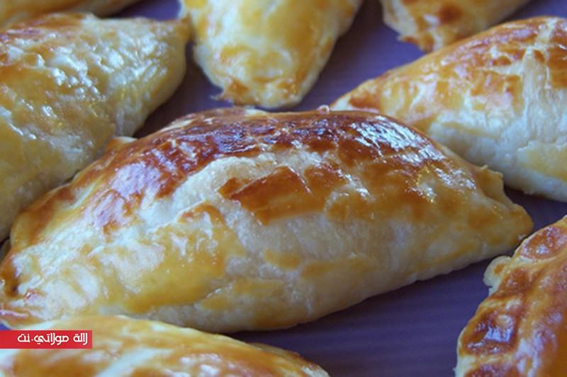 ثم ضعي الحشو على جانب كل قرص واقفليها بالجانب الآخر بحيث يكون شكلها نصف دائرة ثم الصقي الأطراف.