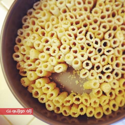 ثم نرص المكرونة بالطول بجانب بعض كما هو موضح فى الصورة،