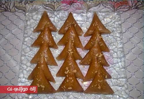قطعت الورقة الى أشرطة تنعمل كرة من اللوز وتنطوي عليها الورقة و تنلصق الأطراف بالبيض