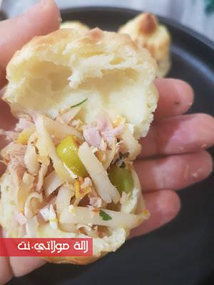 هنا استعملنا الطون. الكاشير مبشور و الزيتون و الجبن مبشور و القليل من الزعتر