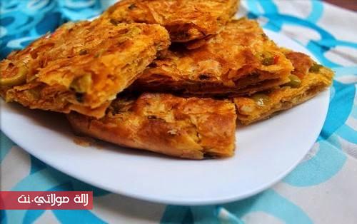 ناخدو كويرة من العجين ونورقوها مزيان بالزيت ونعمروها بشوية الحشوة ونطويوها بالطريقة العادية تاع الرغااايف ناخذو كورة اخرى ونعملو ليها نفس الشيء نورقوها وندهنوها بشوية الحشوة ونوضعو وسط منها الرغيفة لي وجدنا قبل
