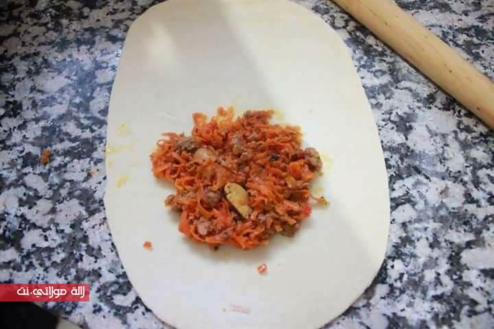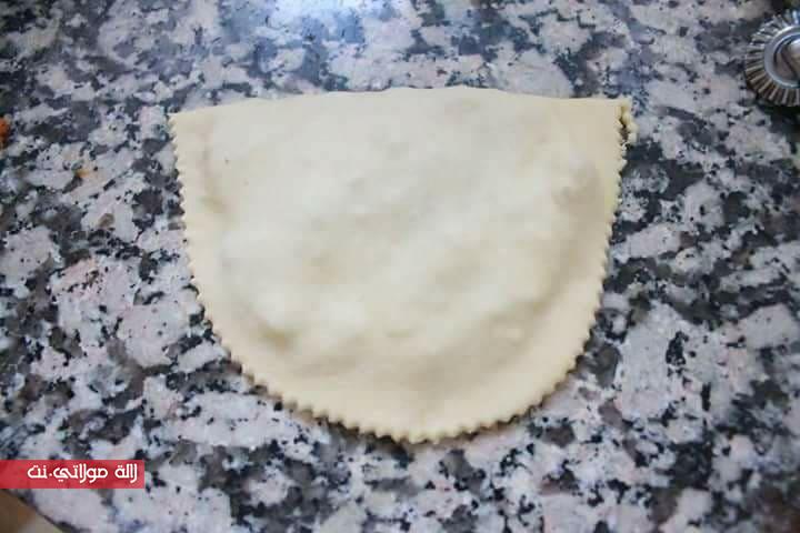بعد ذلك تورق العجينة وتضع فيها الحشوة وتشكل كما في الصور وتطهى في المقلاة وبالصحة والراحة.