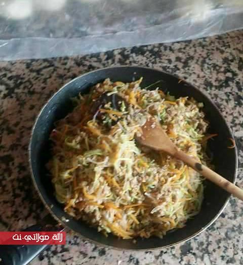 هنا درنا البصلة شحرناها مع الملح وزدت عليها اللحم المفروم والقرع الاخضر اضافة الى الفلفل الاسود وضامة البنة بقري والشعرية الصينية مقطعة فالأخير.الطريقة موضحة بالصور