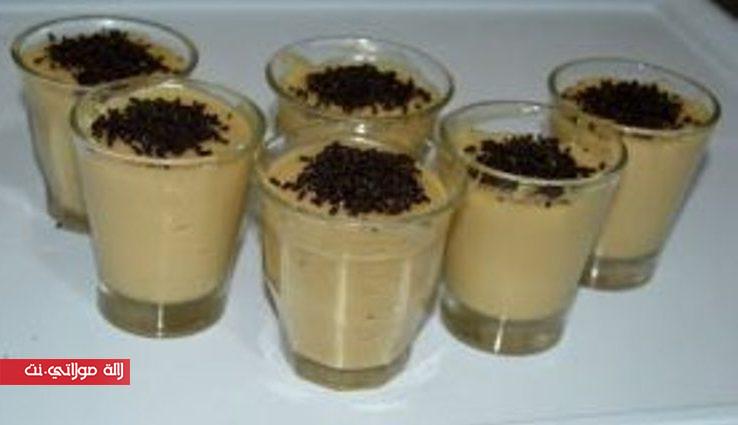 وفي كؤوس ضعي في جوانبها صلصة الكراميل للتزيين ٬ ثم ضعي التحلية في الكؤوس ثم ضعيها في الثلاجة إلى أن تتماسك٬ ثم قومي بتزيينها بالقليل من البسكويت فوق التحلية لتزيينها مع صلصة الكراميل ثم قدميها بالصحة والراحة.