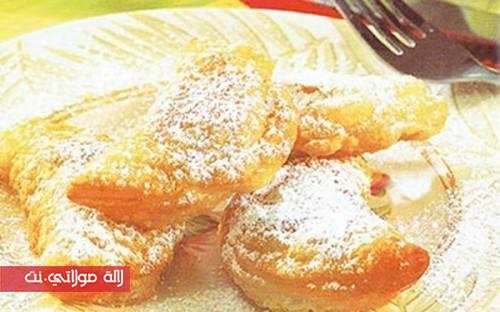 < كأسان دقيق < نصف ملعقة صغيرة ملح < نصف كأس زبدة باردة مقطعة إلى مكعبات < بيضة < ربع ملعقة صغيرة فاني الحشوة < حبتان كبيرتان تفاح < ملعقتان صغيرتان زبدة < ربع كأس سكر بني < ربع ملعقة صغيرة قرفة < ملعقة كبيرة نشا < ربع كأس ماء طريقة التحضير : < في وعاء اخلطي الدقيق والملح والزبدة واخلطي. ضعي البيضة في كأس صغير أضيفي الفاني والماء المثلج إلى النصف واخلطي بواسطة شوكة. صبي الخليط فوق الدقيق مع الخلط . ضعي العجين على سطح مرشوش بالدقيق اجمعيها بأطراف أصابعك غلفيها بورق شفاف صحي واتركيها ترتاح لمدة 10 دقائق. بخصوص الحشوة قشري التفاح وقطعيه إلى مكعبات صغيرة وضعيه في قدر متوسط الحجم، أضيفي الزبدة وضعيه على نار متوسطة وقلبي التفاح عدة مرات إلى أن يلين، أضيفي السكر البني وقلبي ثم القرفة والنشا وقلبي إلى أن يختفي النشا. أضيفي ربع كأس من الماء وقلبي ثم خففي النار واتركي التفاح إلى أن ينضج ثم دعيه يبرد. أحضري مقلاة عميقة، ضعي فيها الزيت وسخنيه على نار متوسطة. أفردي العجين وقطعيه إلى دوائر، ضعي الحشوة في نصف كمية الدوائر وغطي بكمية الدوائر المتبقية واضغطي على الحوافي بواسطة شوكة. ضعي دوائر العجين المحشو في الزيت وحين يصير لونها ذهبيا من الجهتين ضعيها في ورق نشاف وقدميها فورا.