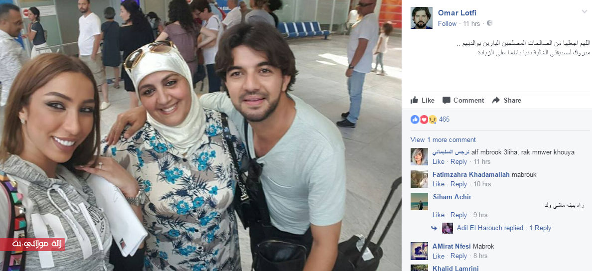 وعلق على الصورة بالقول: « اللهم اجعلها من الصالحات المصلحين البارين بوالديهم مبروك لصديقتي الغالية دنيا باطما على الزيادة ».