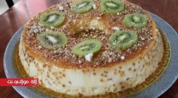 • نتركه يبرد مزيان ندخلوه الثلاجه يبرد و ندوز موس او لي حاجه بشويه على جناب ونحركوا فلان بيدينا على شكل دائري من يتحرك نقلبوه في الصحن والتزيين حسب الرغبة انا زينته بالكيوي واللوز.