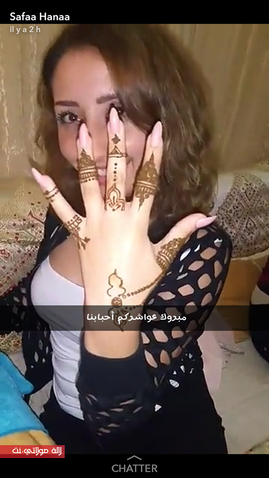 وظهرت صفاء وهناء بلباس عادي في بيتهما وهما تنقشان أيديهما بالحناء احتفالا بليلة القدر كباقي المغربيات.